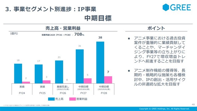 グリーホールディングス<3632>は、2月5日、2026年6月期の第2四半期累計(7~12月)の連結決算を発表した。今回はその決算説明資料から同社のアニメ事業の今後の方針について取り上げたい。