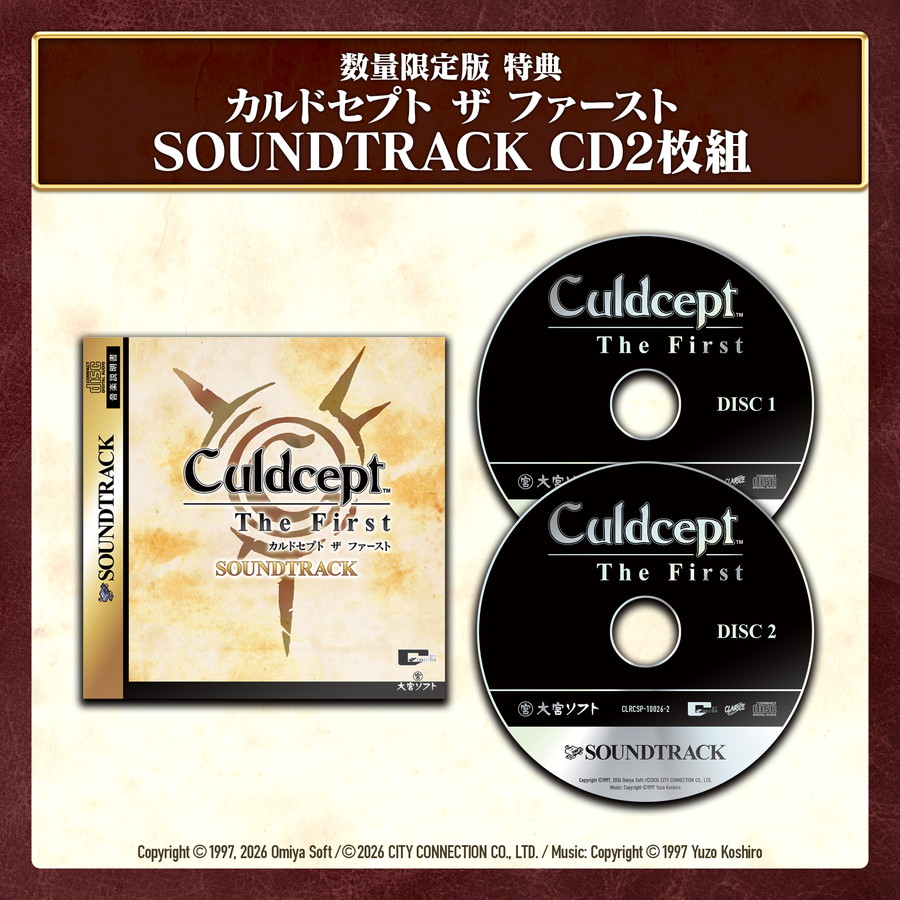 シティコネクションは、ボードゲームとカードゲームが融合した戦略的バトルが楽しめる『カルドセプト』シリーズの原点復刻作『カルドセプト ザ ファースト』を、Nintendo Switch、PlayStation 5、Xbox Series X|S、Steam向けに2026年7月30日に発売すると発表した。Nintendo Switch版のパブリッシャーはネオス、PlayStation 5、Xbox Series X|S、Steam版のパブリッシャーおよび開発はシティコネクションが担当する。価格はパッケージ通常版が4,950円、パッケージ数量限定版が8,800円(いずれも税込み)。