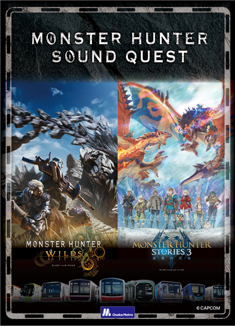 カプコン<9697>は、「Osaka Metro」×「モンスターハンター」のコラボレーション企画として、2月13日から5月6日まで「MONSTER HUNTER SOUND QUEST」を開催することを発表した。本イベントは「Osaka Metro」に乗車し、音声ARを活用したデジタルクエストが楽しめるゲームイベント。『モンスターハンターワイルズ』と、「モンスターハンター」RPGシリーズ第3弾『モンスターハンターストーリーズ3 ~運命の双竜~』の2つの異なる世界が「Osaka Metro」の駅に音声ARで出現する。参加者は、専用の参加キットを購入し、「Osaka Metro」に乗って様々な音声ARスポットを巡ることでクエストをクリアすることができる。