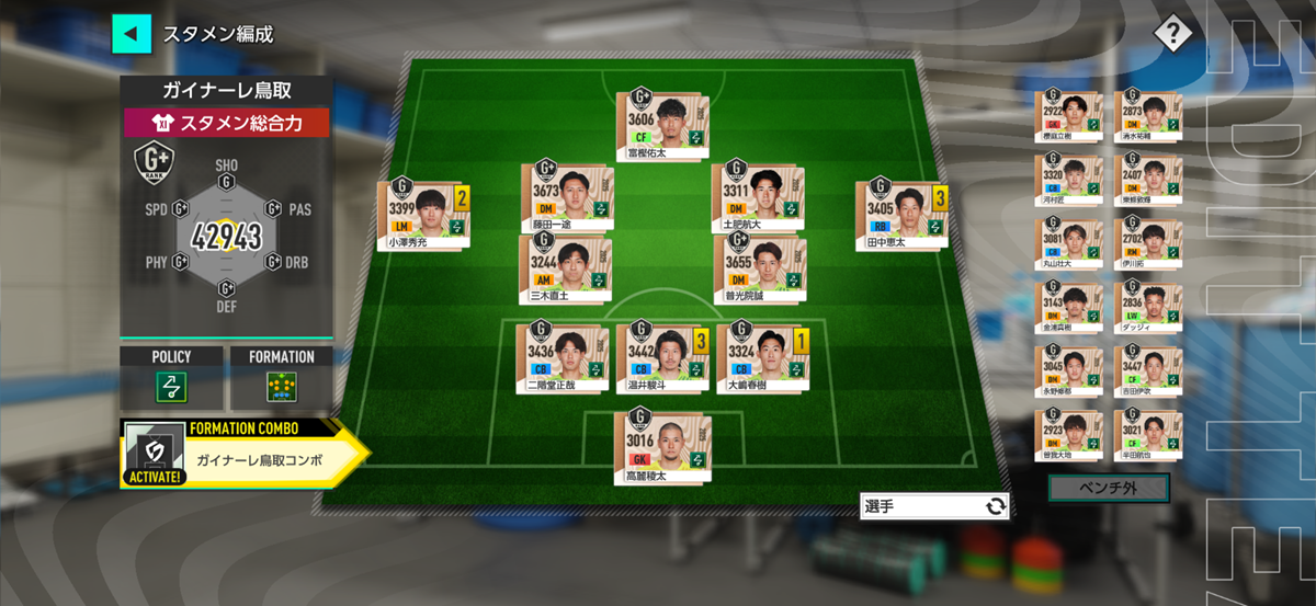 ▲この試合はベンチメンバーだけど、DM稲葉修土選手は圧倒的なボール奪取能力とハードワーク、球際の強さで中盤を制圧するプレイヤー。苗字が同じだから親近感を覚える。良かったら来シーズン、こっち(秦野F・ナッツ)来いよ!