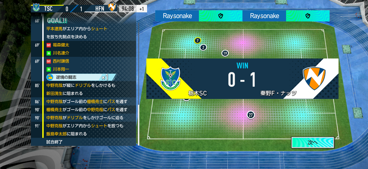 伏兵の活躍によって、連敗を4で止めることができた。しかもアウェイゲーム初勝利!!