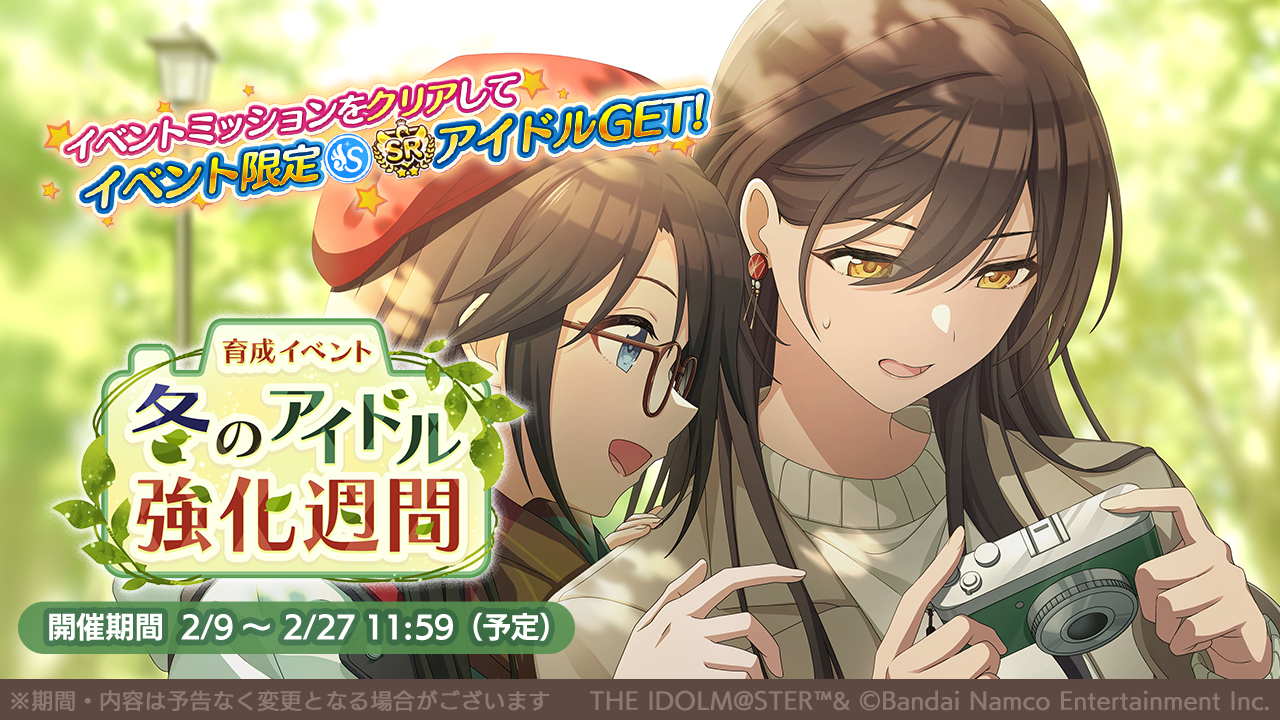アイドルを大きく成長させられる育成イベント「冬のアイドル強化週間」を開催中。