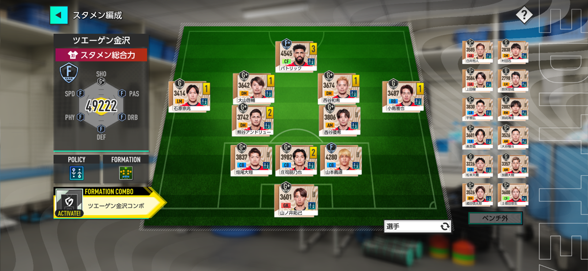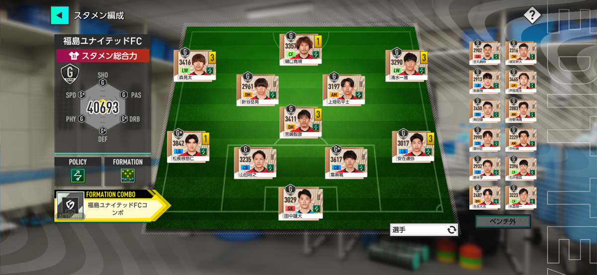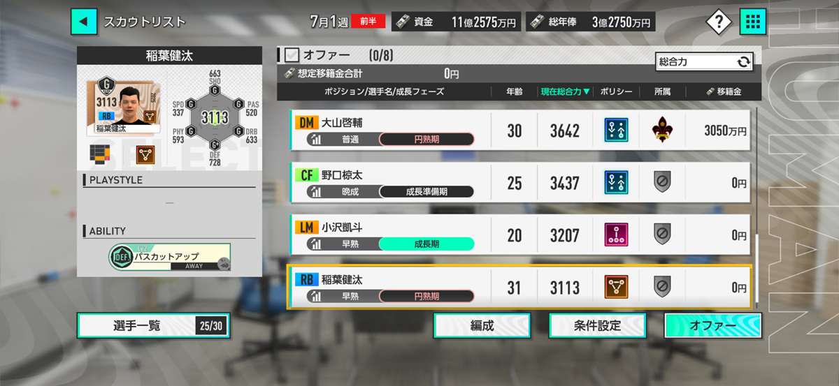 ▲そういえば、うちのスカウトがリストアップしてくれた選手の中にRBの稲葉健汰って子がいてね。同じ苗字のよしみで獲ろうかと一瞬考えたけど、やっぱり1シーズン目はイジらないでこのまま突き進むよ。