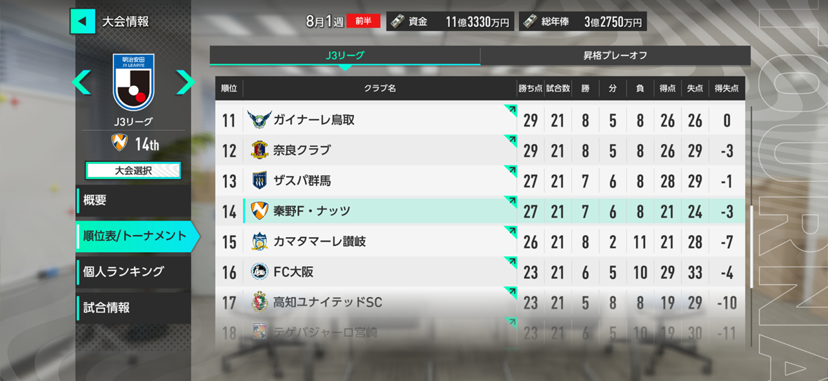 ▲第19節を終え、J3リーグはしばし中断期間に入った。