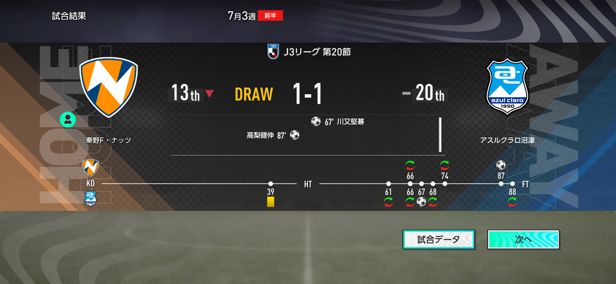 【J3リーグ第20節 アスルクラロ沼津(HOME戦)】