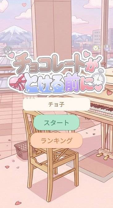『チョコレートが溶ける前に』は、チョコレートを抱えた女の子が、太陽の熱に負けずに男の子のもとへ向かう“タイミングアクション"ゲーム。