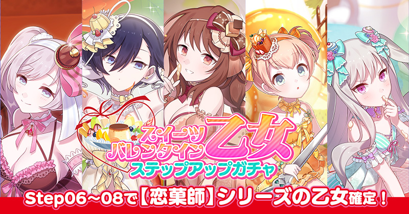 バレンタインイベントの開催にあわせ「スイーツバレンタイン乙女ステップアップガチャ」の販売を開始した。