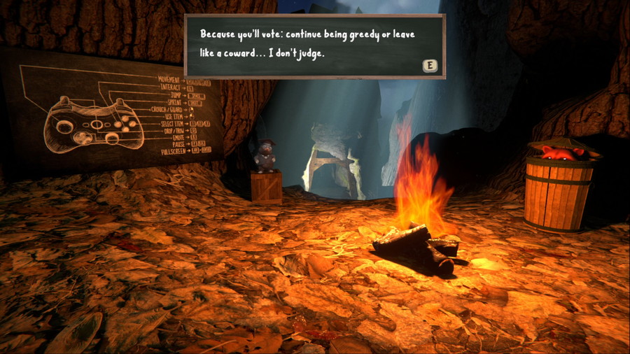 遺物を運び終えた後、チームは、戦利品をすべて確保して換金するか、さらに深く進んで次のフロアのためにすべてを危険にさらすかを投票で決定しなければならない。