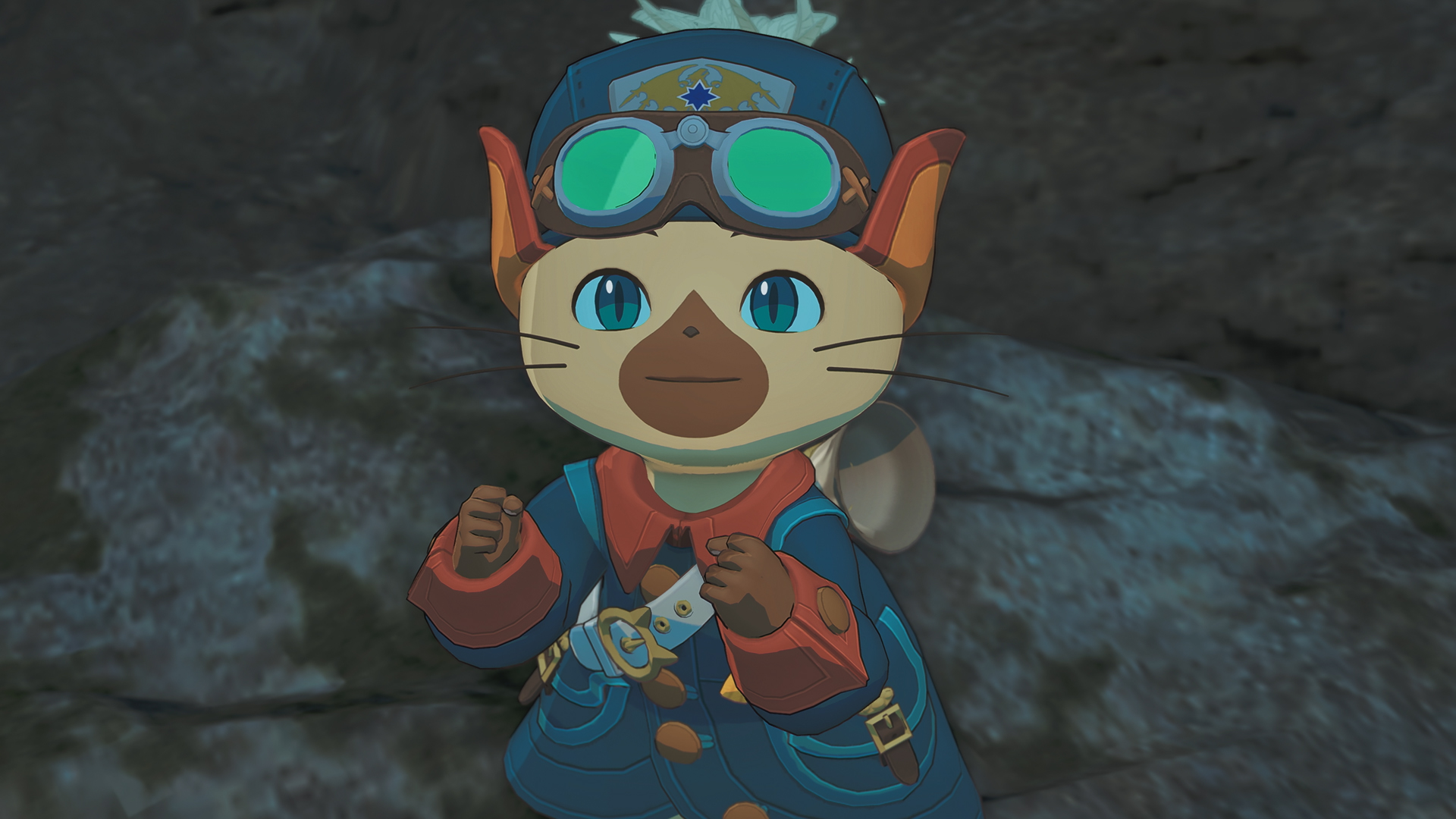 緋の森のベースキャンプで、ハンターたちはアズラル国から来たロイヤルアイルー、ルディと出会う。