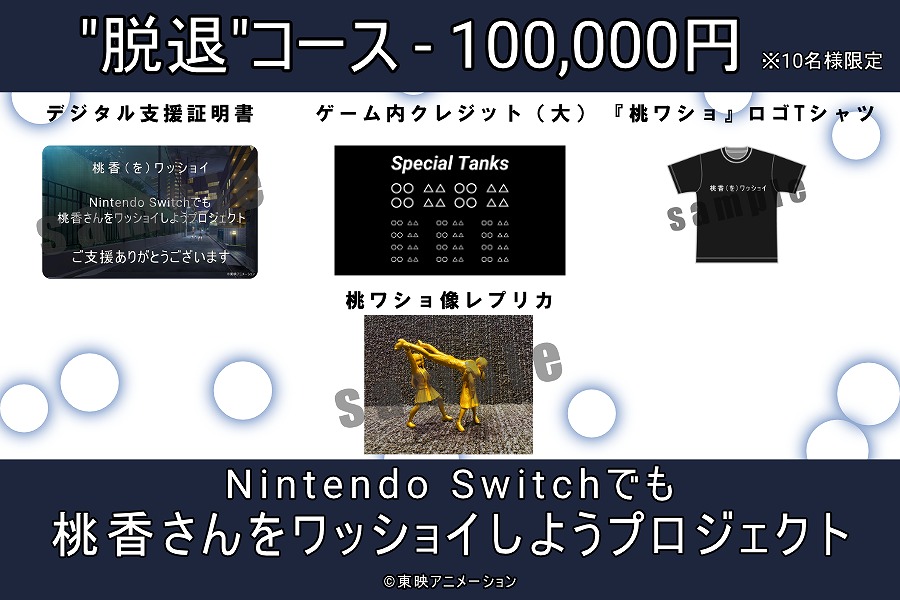 ゲーム内クレジットや『桃ワショ』ロゴTシャツなどのリターンを用意している。