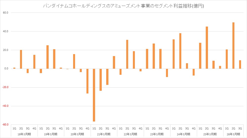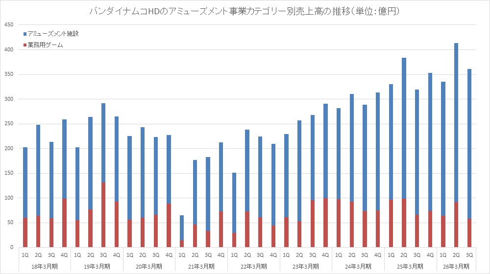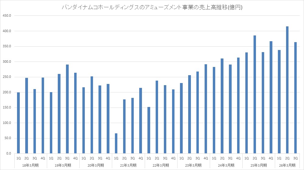 バンダイナムコホールディングスでは、アミューズメント事業については、グループの商品・サービスの認知を拡大するためのファンとのタッチポイントと位置づけており、今後もその役割をさらに強化したい、としている。