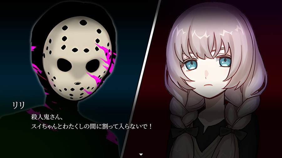 これに憤慨したリリは「スイちゃんとわたくしの間に割って入らないで!」と宣戦布告をした。誰が殺人鬼でもおかしくない状況を演出するため、主人公と仲間以外の人物は全身真っ黒なシルエットで登場する。