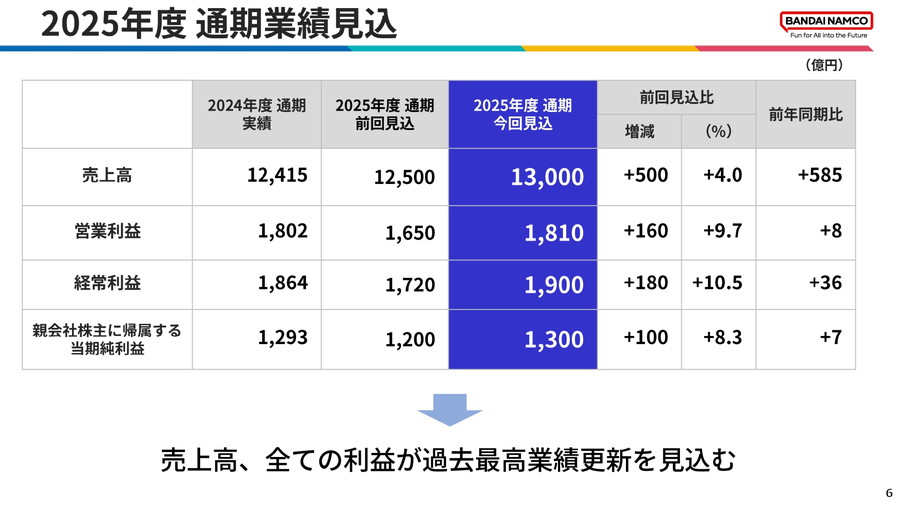営業利益は前年に及ばなかったものの、幅広い事業カテゴリーと多彩なIPによるポートフォリオ経営が安定的に機能した。
