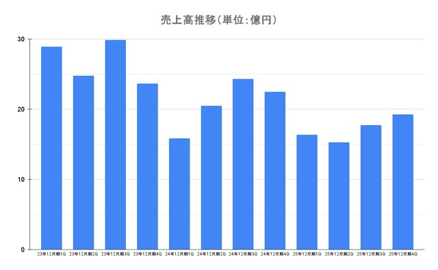 - 売上高83億600万円、営業損益13億4200万円の赤字、経常損益12億8000万円の赤字、最終損益27億8200万円の赤字(2024年12月期)