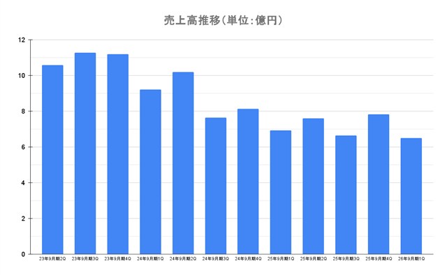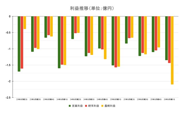 - 売上高28億9700万円、営業損益4億6700万円の赤字、経常損益4億4200万円の赤字、最終損益4億3400万円の赤字(2025年9月期)