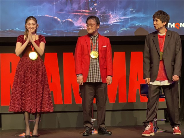 デモプレイを終えたゆうちゃみさんは「どっちが鍵を取って、開けてと協力するのが凄く楽しい!」とコメント。一方、稲田さんは「僕が「どうする?」と聞いた時にはゆうちゃみさんはもう先に進んでいたり、性格も出るのが面白いですね」と感想を語った。その後、登壇した3人に特製のメダルを贈呈。