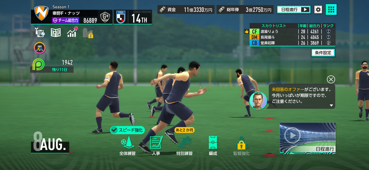▲かつてのドリキャスのCM「セガなんてダッセーよな。プレステのほうがおもしろいよな」を彷彿とさせる、キッズたちの無邪気な「また稲葉監督のカードがダブった」発言に発奮した俺の監督Lvが3になり、サカつくモード:監督強化が卍解……すなわち解放された。