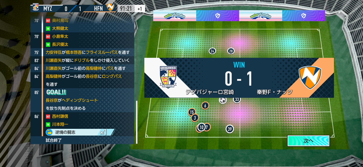結局、長沢のゴールが決勝点となり、秦野F・ナッツが相模原との神奈川ダービーを制した。