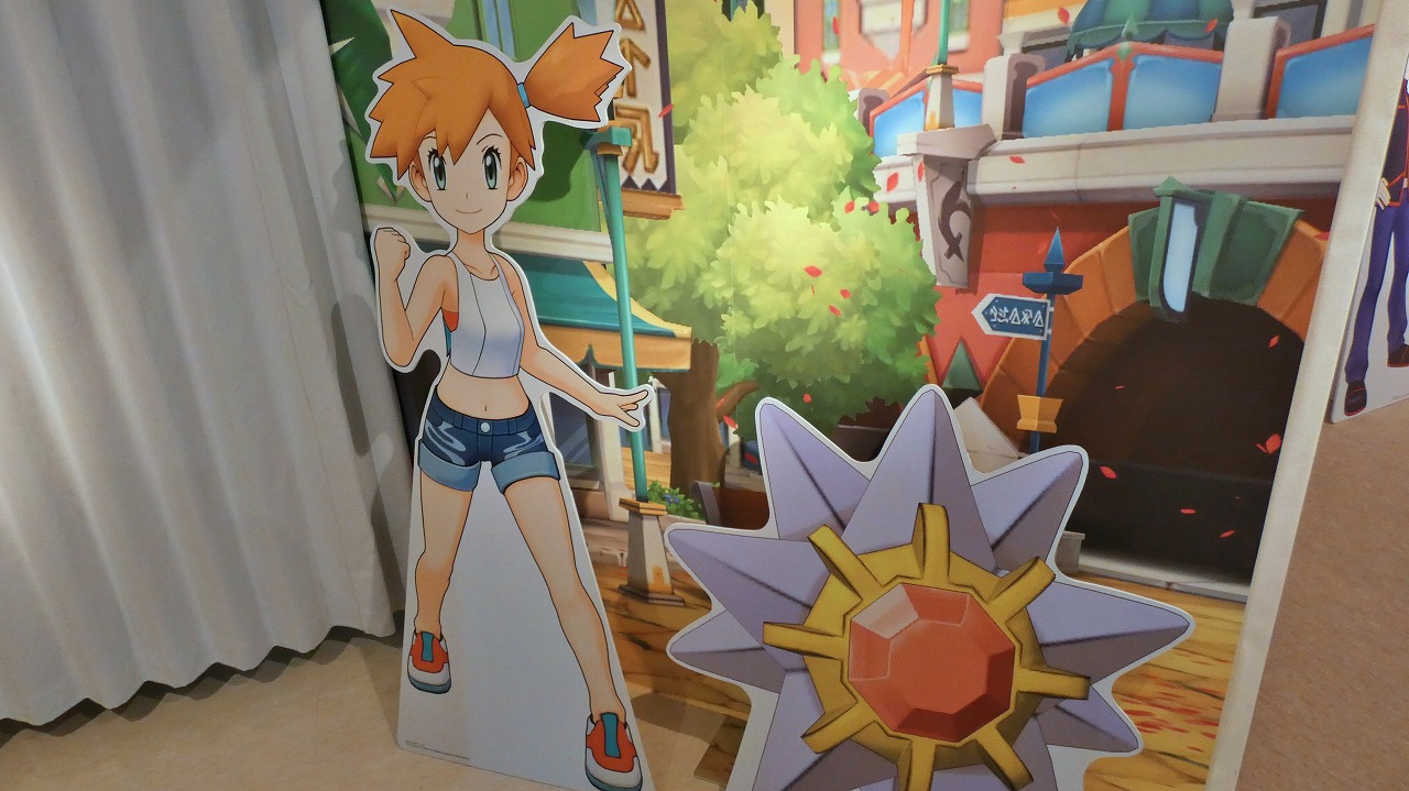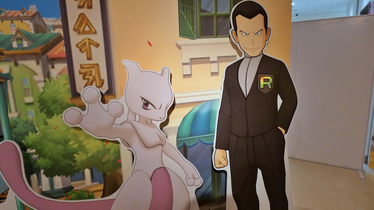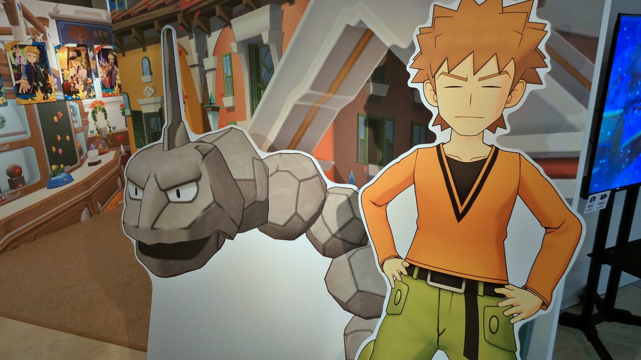 エントランスで来場者を迎えてくれるのは、グリーン&ピジョットのるスタンディだ。そのすぐ奥に広がる「パシオフィールド」をイメージしたエリアには、カスミ&スターミー、タケシ&イワークといったお馴染みのバディーズだ。さらにこの裏側にはサカキ&ミュウツーが控えているので、見逃さないようにチェックしてほしい。