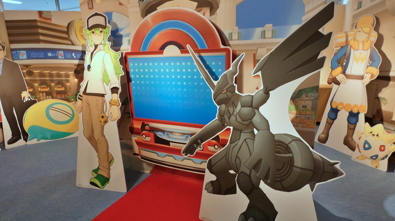 そして「ポケモンセンター」を模したエリアでは、さらに多くのトレーナーたちが集結している。デンジやN、ルザミーネ、プラターヌ博士に加え、根強い人気を誇るノボリ&クダリのコンビも登場。これだけの数のパネルが一同に会する光景はまさに壮観の一言。