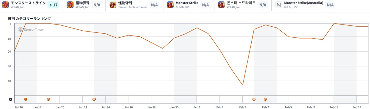 | 3 | 13 | ↑10 | モンスターストライク | MIXI<2121> |