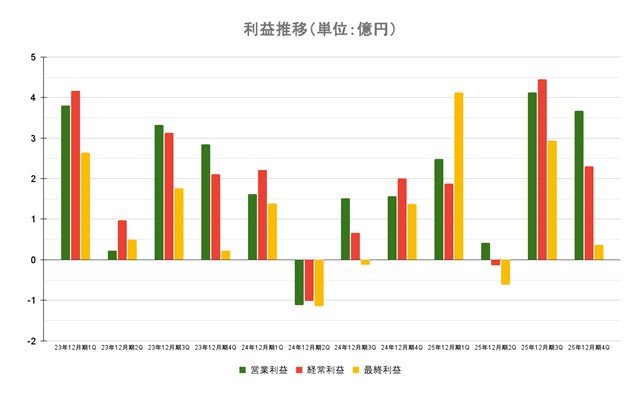 - 売上高167億2700万円、営業利益3億5800万円、経常利益3億8800万円、最終利益1億4900万円(2024年12月期)