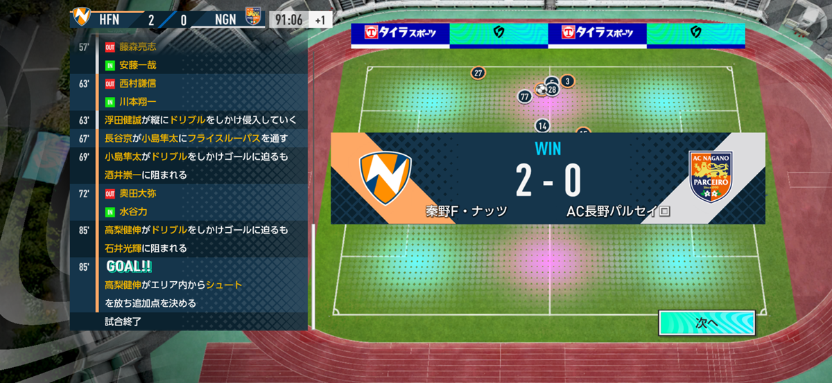 ▲69分、1点差に詰め寄られるも逃げ切りに成功!