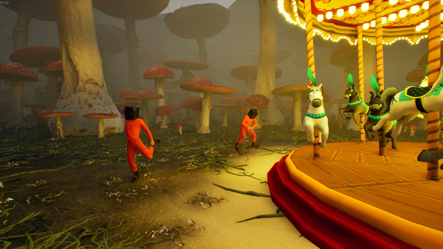 ・1人でも4人でもカオス: 最大3人の友達とチームを組んで、ホラーと不条理な笑いが入り混じるカオスな旅に出発する。奇妙な小枝の生き物と出会い、廃墟となったテーマパークで踊り、一緒に狂気に立ち向かうもよし、一人で挑むもよし。悲鳴と笑いとカオスが待ち受ける。