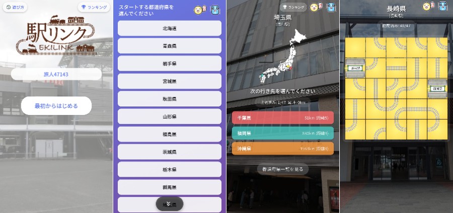 ・スキマ時間で進められる旅: 進行状況は自動保存されるため、通勤時間や休憩中など、好きなタイミングで少しずつ日本をつないでいける。