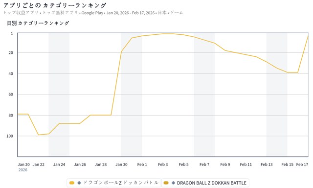 【Google Play(2/18)】「11周年キャンペーン第2弾」を開催中の『ドッカンバトル』が4位に急浮上 『ウマ娘』は25位に上昇してトップ20復帰をうかがう体制に