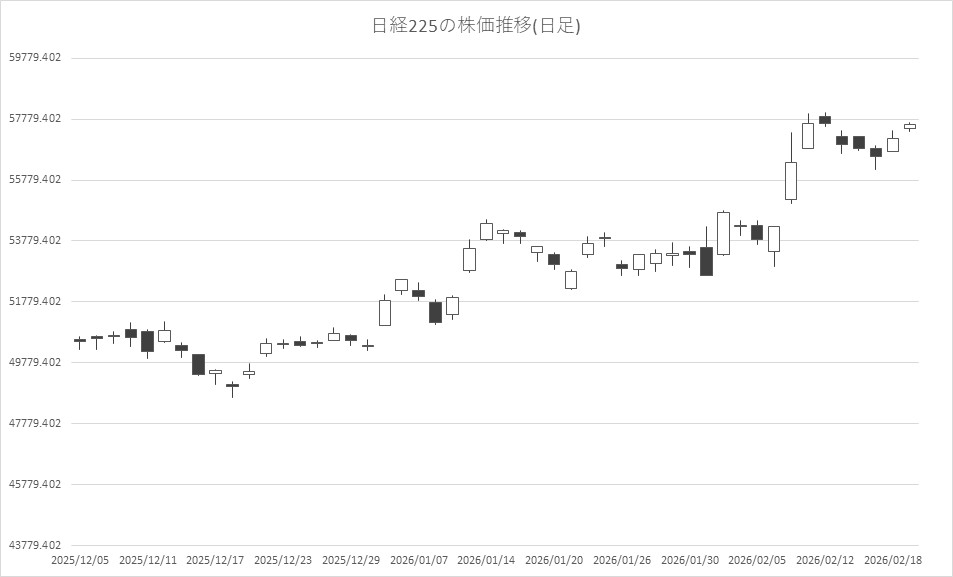 2月19日前場の東京株式市場は続伸。日経平均株価は、前営業日比454円99銭高の5万7598円83銭で午前中の取引を終えた。前日の米国市場でハイテク株が買われた流れを受けて、半導体やAI関連など指数寄与度の高い銘柄が買われたという。