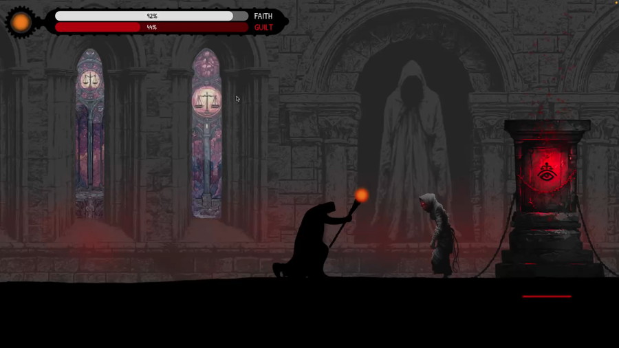 本作は、信仰と罪のバランスを保ちながら、堕落した修道院の隠された真実を明らかにする内省的なナラティブホラー体験である。プレイヤーは孤独な修道士エリアスとなり、祈りを武器に、歪んだ魂や呪われた物体を清めることを目指す。清めのたびに「信仰」が減少し「罪」が増加し、このバランスを維持することが求められる。「信仰」がゼロになると清めができなくなり、「罪」が100%に達するとエリアスは屈服しゲームオーバーとなる。