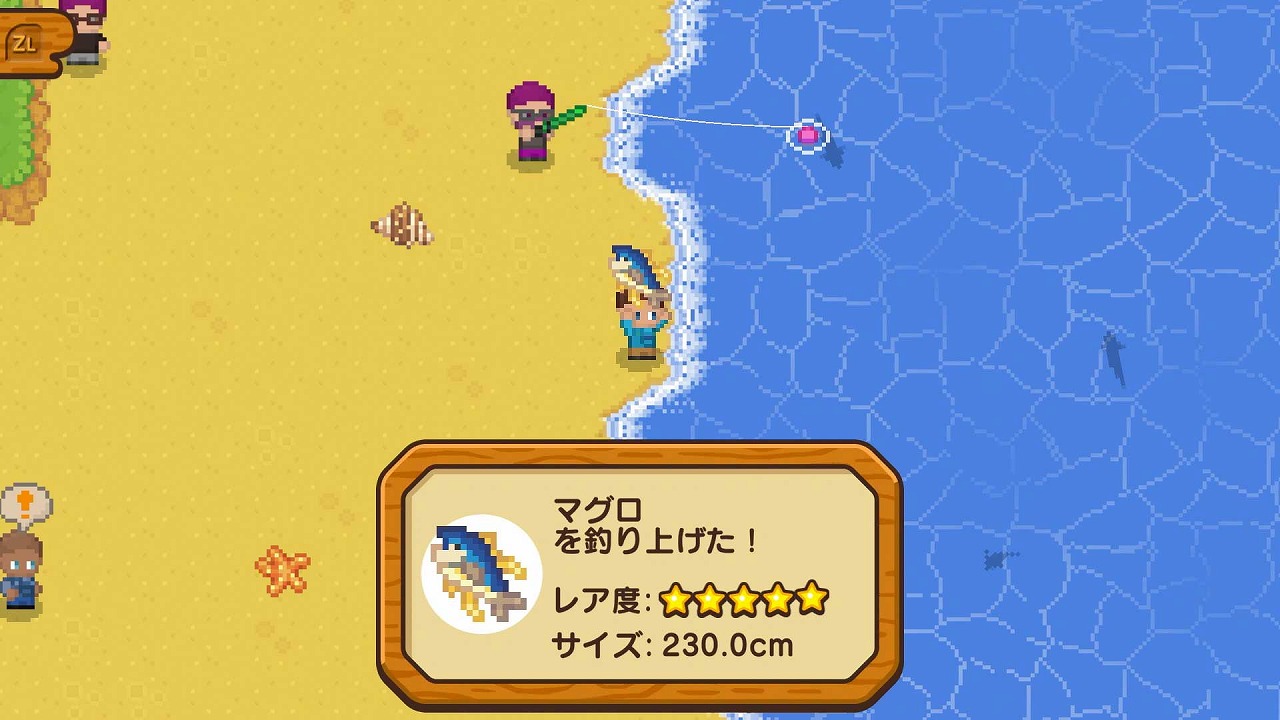 川・湖・海などさまざまなフィールドで釣りを楽しみながら、村人からの依頼をこなしたり、図鑑コンプリートを目指したりと、やり込み要素も充実。やがて現れる巨大な“ヌシ"との対決も、本作の大きな見どころ。