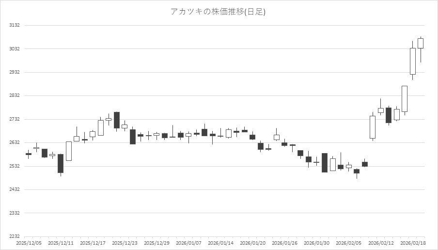 2月19日の東京株式市場は続伸。日経平均株価は、前営業日比323円99銭高の5万7467円83銭でこの日の取引を終えた。前日の米国市場でハイテク株が買われた流れを受けて、半導体やAI関連の一角を中心に幅広い銘柄が物色された。プライム市場では7割近くが上昇したとのこと。