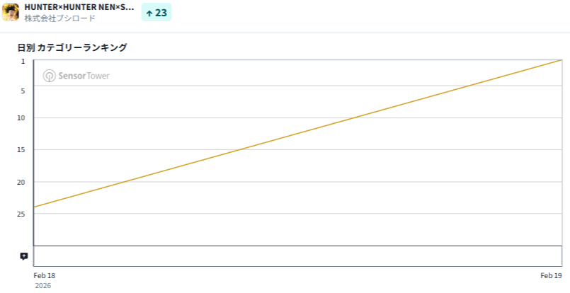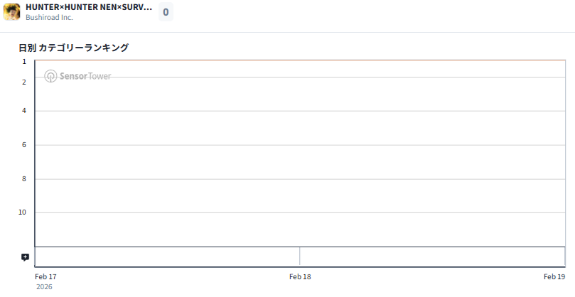 ブシロード<7803>は、この日(2月19日)、『HUNTERxHUNTER NENxSURVIVOR(ネンサバ)』について、AppStoreとGooglePlayの無料ダウンロードランキングで首位に立ったことを明らかにした。これを記念して追加特典の配布を検討しているそうだ。