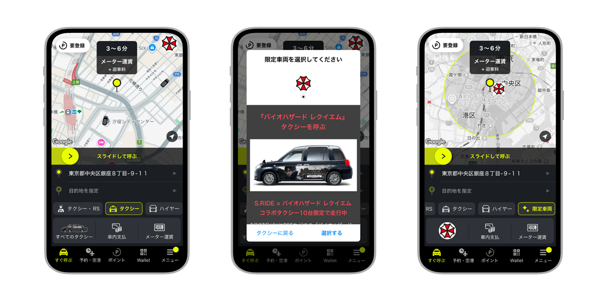 さらに本報ではタクシーアプリ「S.RIDE®」とのコラボレーション情報もお届け。都内を走る本作の主人公グレース・アッシュクロフトとレオン・S・ケネディが描かれたタクシーに乗車しよう。