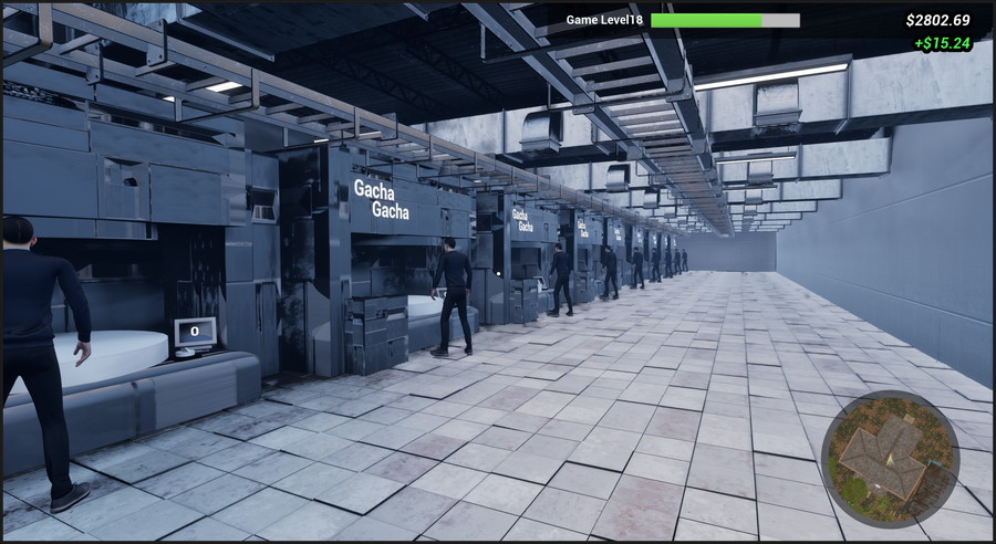本作は、バトルロイヤルゲームを運営する経営シミュレーションゲームである。プレイヤーは、マッチの運営やガチャのアイテムの補充・発送、マップの拡張、デバッグ、そしてチーター対策などを行いながら、ゲームを発展させていくのが目的だ。