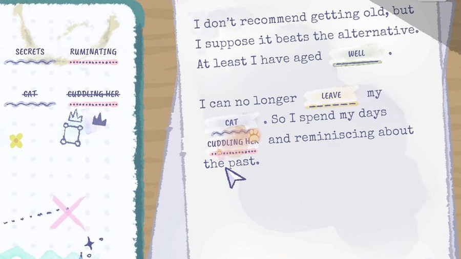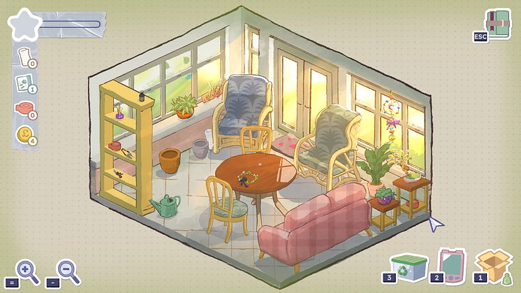 水彩画風の美しいアートスタイルで描かれたタビサの家を探索し、家具を移動させ、棚の鍵を開け、引き出しを掘り起こして、彼女の人生を形作ったがらくたを見つけ出す。アイテムを保管できる箱は部屋ごとに1つしかなく、限られたスペースに収めるため、テープや緩衝材、圧縮パック、封筒などを使ってアイテムを縮小・保護し、整理術が試される。