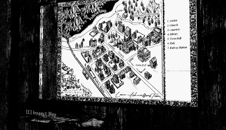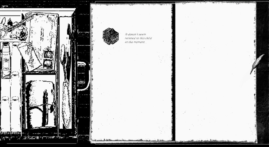 ・モノクロのペン画スタイルで表現された3Dの画室を1人称視点で探索し、アトリエ内に配置された新聞や地図などを確認しながらNPCと対話する。