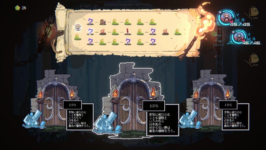 ゲームの紹介をしておくと、本作は、ダンジョンの奥で能力を失い「詰み」状態となった4人の勇者パーティから、たったひとりの仲間を選んで脱出を目指すローグライト風味のダンジョン探索アドベンチャーである。