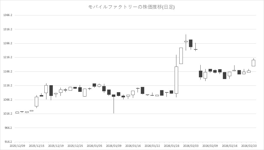 騰落ランキングを見ると、モバイルファクトリー<3912>やホシデン<6804>、東京都競馬<9672>、ポールトゥウィンHD<3657>、HODL1<2345>が値上がり率上位となり、ワンダープラネット<4199>、SHIFT<3697>、サン電子<6736>、サイバーステップ<3810>、バンク・オブ・イノベーション(BOI)<4393>が値下がり率上位となった。