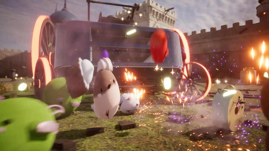 ・マシンガンを撃つカヌレやレーザービームを放つバームクーヘンなど、個性豊かなスイーツたちが大乱闘を繰り広げるハチャメチャなコイン争奪戦