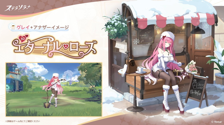 2月24日メンテナンス後より、グレイのアナザーイメージ「エターナル・ローズ」をショップにて期間限定で販売する。この「アナザーイメージ」は、2D(立ち絵)と3Dモデルが変化する。さらに、お得なパックも計8種、期間限定で追加される。
