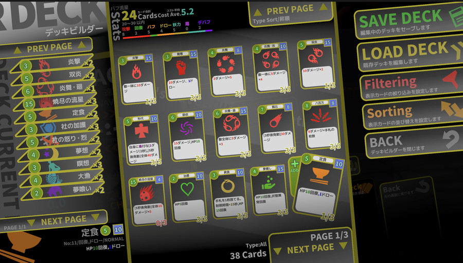 ・ローグライト要素のあるデッキ構築。カードは使用回数制限があり、戦闘をクリアするたびにカードを入手・取捨選択し、流動的なループの中で最強デッキを目指す。