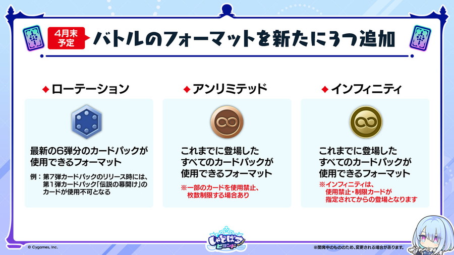 4月末にバトルフォーマット「ローテーション」「アンリミテッド」「インフィニティ」が追加される。