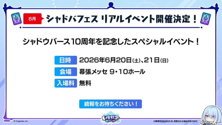 シャドウバース 10周年を記念し、6月20日、21日の 2日間、幕張メッセ 9・10 ホールでリアルイベント「シャドバフェス」を開催する。入場無料で参加型のコンテンツを多数用意する。