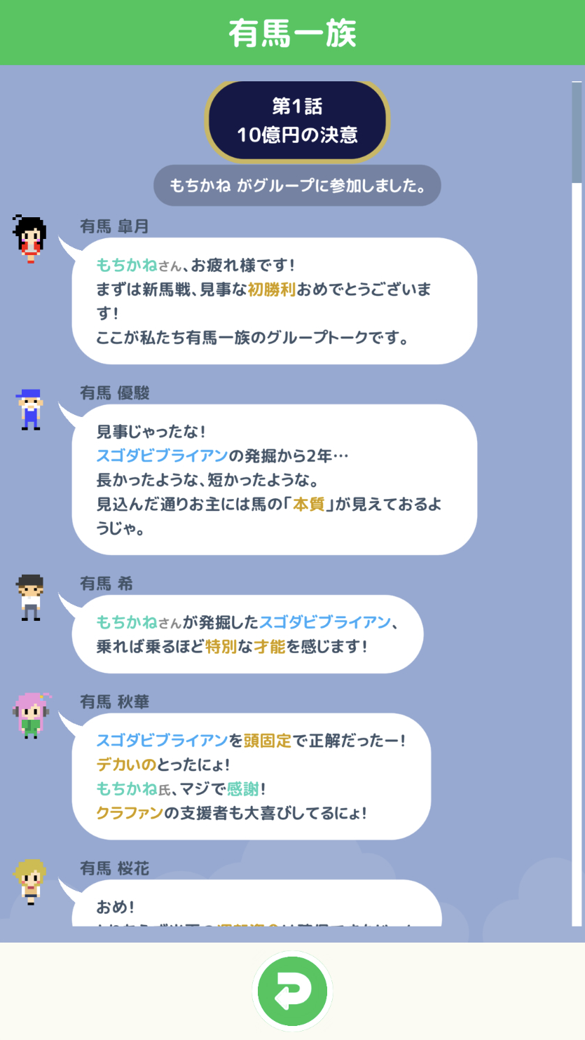一般的な競馬ゲームにある「ガチャ」や「配合」を廃止し、ひたすら「厳選」と「継承」で強くなることが特徴。舞台は崖っぷちに立たされた有馬一族が営む「有馬ファーム」と「有馬厩舎」だ。