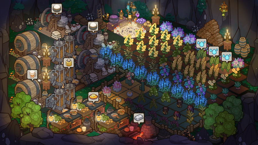 栽培、不思議な生物「人柴」の育成、開店、錬金という一連の業務をこなし、地下の錬金エリアに設備を設置すれば、素材の投入だけで不思議なアイテムの自動生産が可能になる。また、街に暮らす人間や異種族と交流を深め、力自慢のアカネ、IQの高いナナ、事件調査のエキスパート・グレーテル、神託を引き出せる王女・オーロラといった個性的な仲間たちを従業員として迎える。