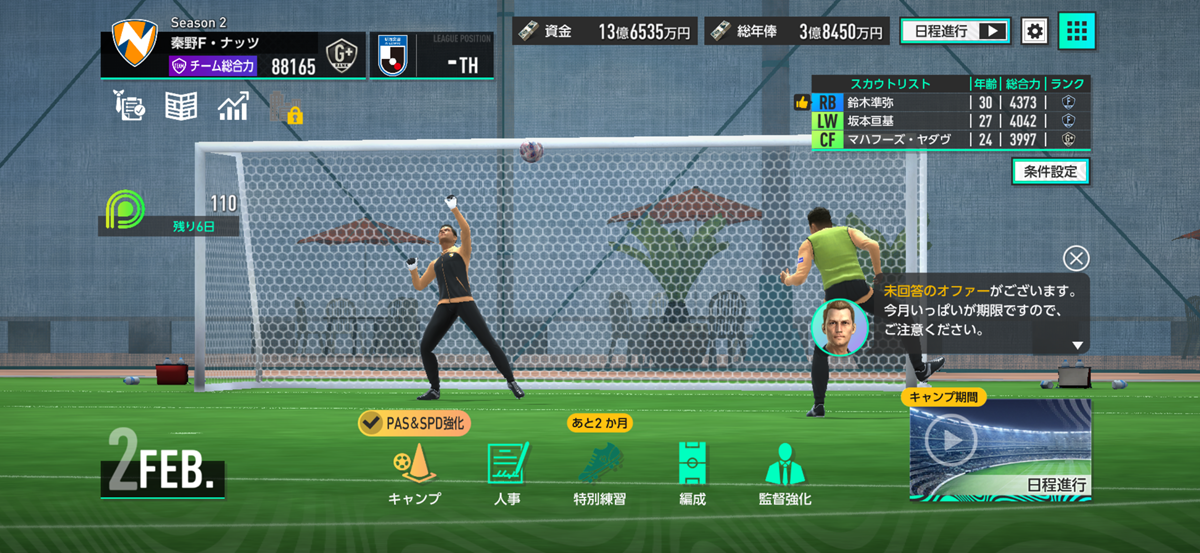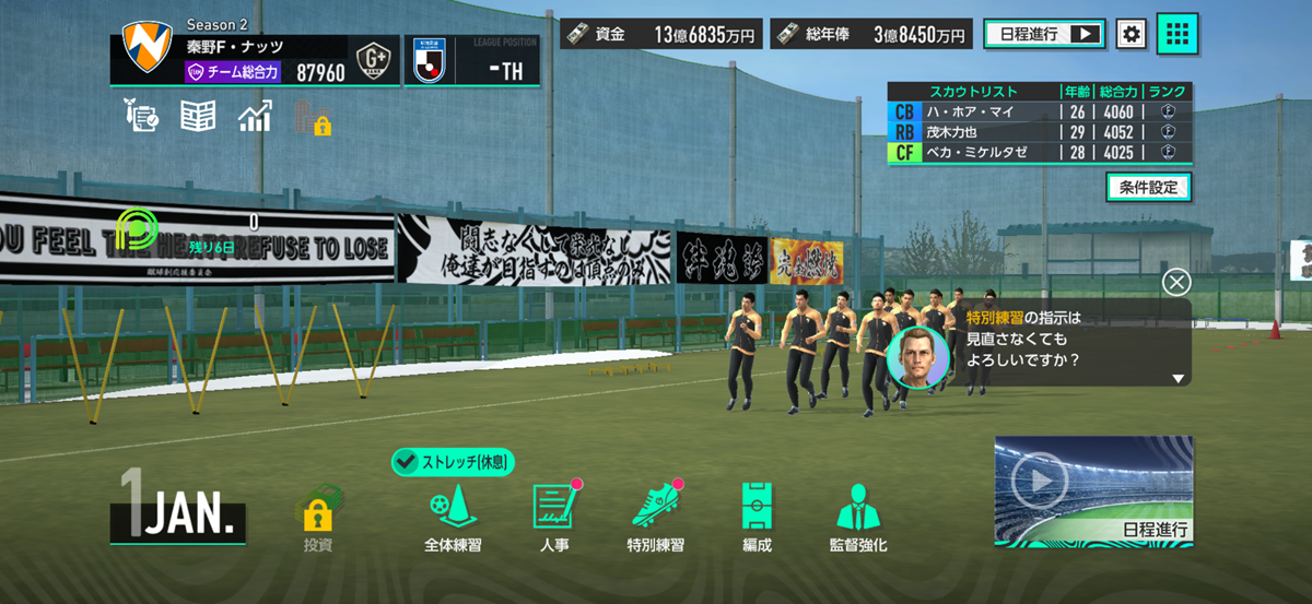 鹿児島キャンプでどこまでシステムを落とし込めるかはまだわかんないけど、伝統のデフォルトスタイル(4-3-3 B リアクションサッカー)とT.M.R.evolution turbo type B(3-6-1 A ポゼッションサッカー)の2枚立てで、対戦するクラブによって可変する変幻自在のフォーメーションで、2シーズン目を戦うぞ!