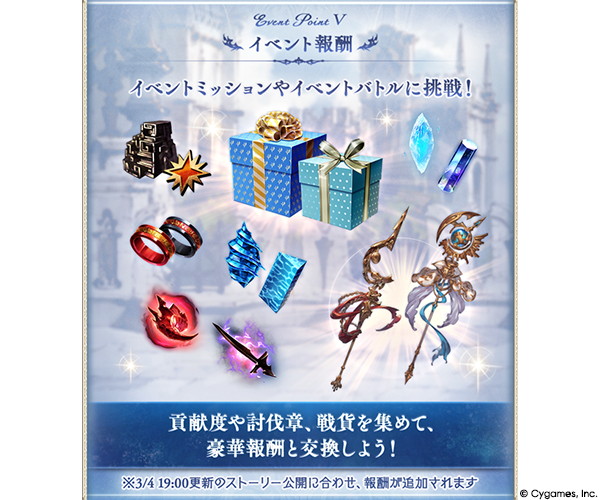 イベント開催期間中にいつでも達成できるイベントミッションと、毎日更新されるミッションをクリアすることで、「イベント限定 SS レア装備」やレジェンドガチャチケット、宝晶石などの報酬が手に入る。